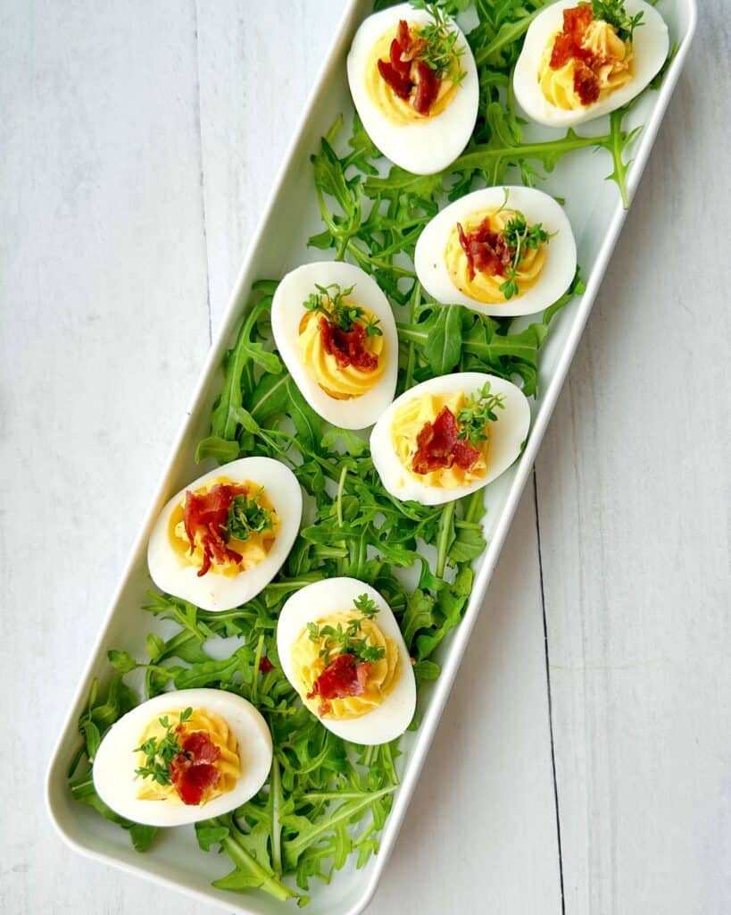 Jeg laver som regel djævleæg med bacon, når jeg skal lave en forret eller en lille snack, som både ser indbydende ud og ikke tager lang tid at lave. De passer perfekt til et klassisk frokostbord – især til påske og jul, hvor æg og bacon nærmest hører sig til. Jeg sætter dem ofte på bordet sammen med sild, rugbrød og lidt grøn salat, så der er lidt for enhver smag.